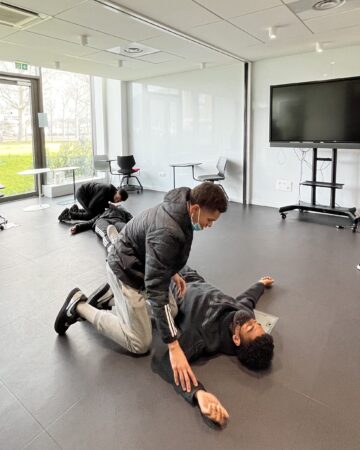 Jeudi, plusieurs sessions de formation aux premiers secours ont été organisées pour nos jeunes. Accompagnés par les Pompiers de Lyon, ils ont appris quelques gestes importants à appliquer en cas de besoin : mettre en place la Position Latérale de Sécurité, faire un massage cardiaque et utiliser un défibrillateur.