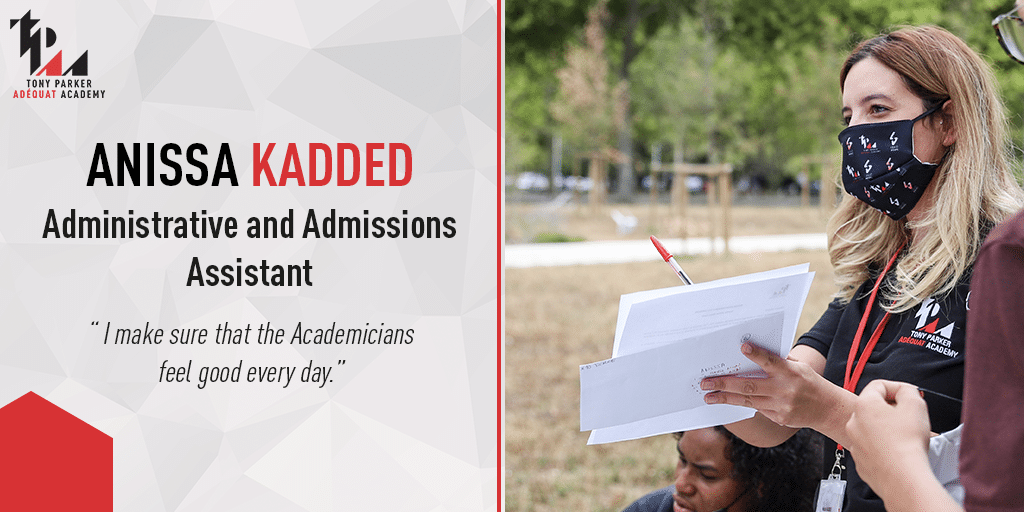 My name is Anissa, I am 27 years old and I am the Admissions and Administrative Assistant at the Tony Parker Adequate Academy. I have been an administrative assistant for 3 years in a company and for just over a year now I have been working at the Tony Parker Adéquat Academy.