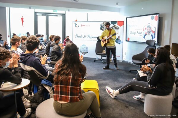 Lors de la rencontre « Paroles de Passionnés », il a pu témoigner de son parcours et répondre aux questions préparées par les membres des Clubs Média et Art. Un parcours de vie riche, de son enfance avec la passion de la musique transmise par son papa, son passage dans l’émission The Voice, son duo Fréro Delavega puis sa carrière solo jusqu’à l’envie d’un troisième album déjà en tête…