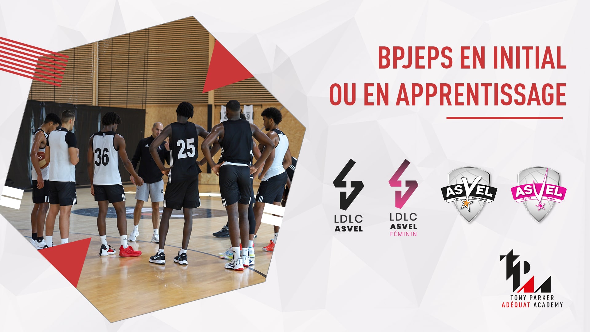 - La Tony Parker Adéquat Academy vous accompagne dans la recherche d’employeur : avec un engagement de LDLC ASVEL et LDLC ASVEL Féminin, clubs professionnels partenaires de l’Academy