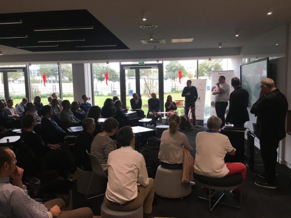 Après un accueil café dans la "life zone", Xavier LUCAS, Président délégué de l'Academy, a pu accueillir le groupe de soixante-quinze managers EDF dans l'espace Adéquat de la "work zone", pour leur présenter leur concept et les locaux.